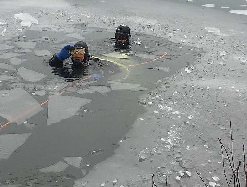 Eistauchen geschieht grundsätzlich nur mit Sicherungsleine. Die Sicherheit des Tauchers hat hier oberste Priorität.