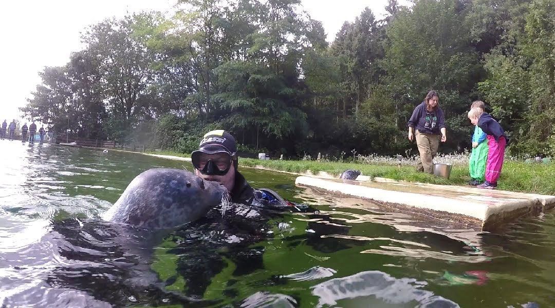 Ein besonderes Highlight ist auch immer die durch Taucher des DUC vorgenommene regelmäßige Reinigung des Seehund-Beckens des Neuwieder Zoos!